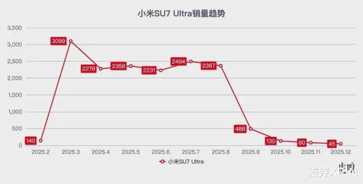 恶果不问可知,SU7 Ultra 的销量也从 2000 多辆慢慢走低到 3 位数,再到两位数。。。