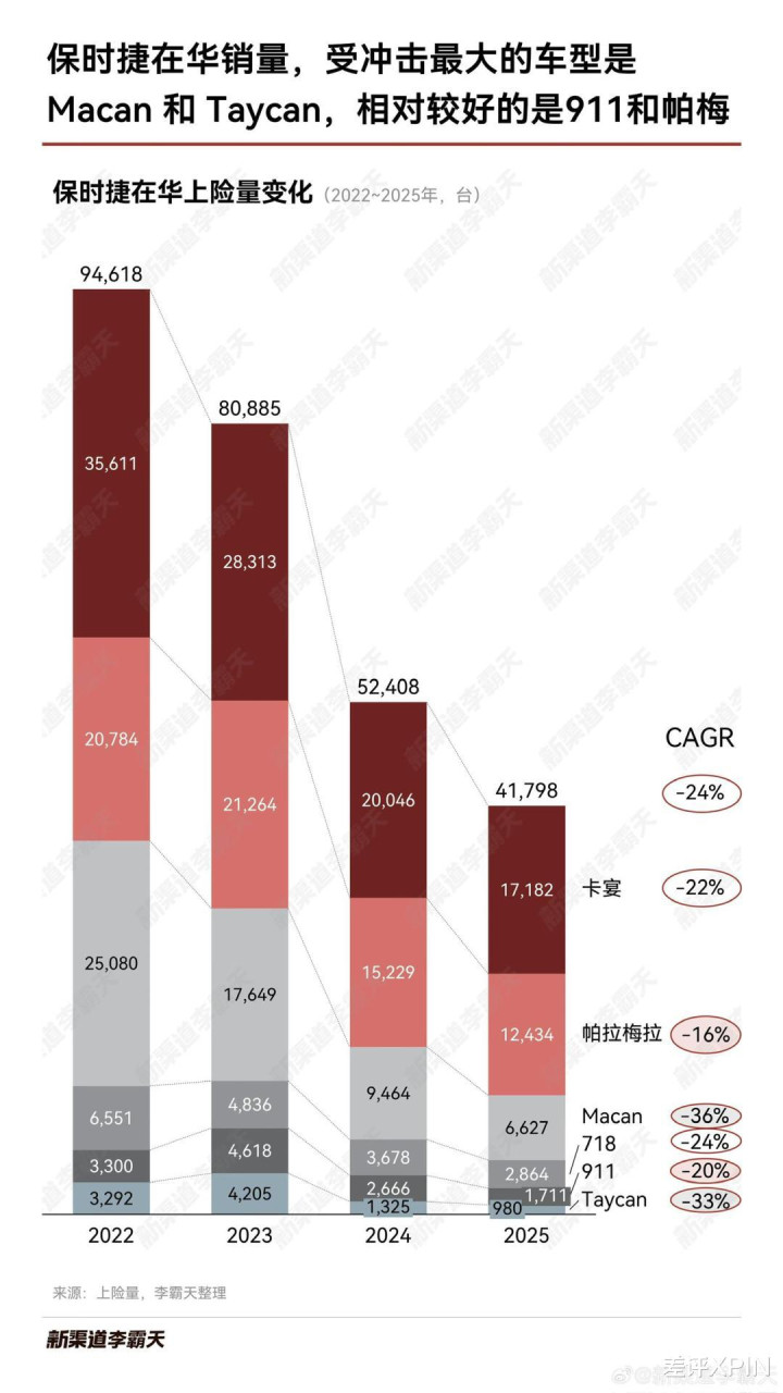 曾在保时捷任职的姜客跟我们说,其实买跑车的圈子很小,来往返回即是那么一些东谈主,保时捷这两年销量如实掉得挺利弊,然而 718 和 911 销量变化不算越过大。